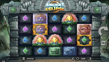 Слот Ancient Eclipse приваблює колоритним дизайном та ефектною анімацією, що супроводжується характерними саундтреками. Відразу після запуску апарату гемблер виявляється перед древнім храмом, стіна якого викладена тотемними барельєфами. На плитках красуються зображення стародавніх божків та стилізовані карткові масті. Для отримання виплат необхідно зібрати безперервну послідовність із однакових символів. Для формування комбінацій пропонується використовувати 5 барабанів та 50 смуг.