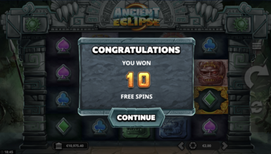 Ігровий автомат Ancient Eclipse оснащений унікальною бонусною опцією. Картинки з місяцем залишають золоті рамки (Sun Frames), які фіксуються на своїх позиціях. Як тільки в рамці з'явиться бонусний знак, функція Wild Eclipses стартує. Тоді всі Sun Frames заповнюються вайлдами та на полі утворюються нові виплатні послідовності.