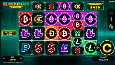 Запускайте демо-версію апарата Blockchain Megaways від Booming Games