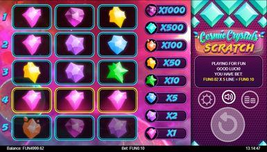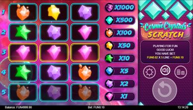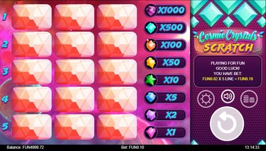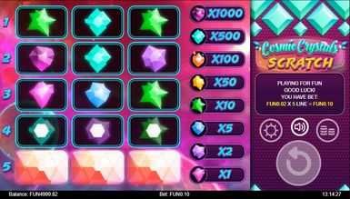 Cosmic Crystals Scratch — ігровий автомат, у якому поєднується дві теми. Слот наділений цікавим дизайном, простими правилами, зручною навігаційною панеллю. Призи в ньому можна отримати завдяки спеціальним символам, і за допомогою спеціального знака.