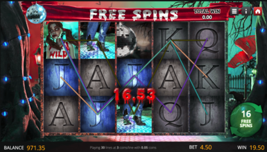 Зомбі-Джок — Дикий ігрового автомата Мертві Удари онлайн, що замінює будь-який стандартний. Знаки фріспінів — це символи розкиду, що запускають бонусні ігри. Дикий може розширюватися, коли він з'являється на 2-му і 4-му барабанах. Вайлд розповсюджується на всю котушку, таким чином завершуючи будь-які можливі комбінації. Три або більше розкидів у будь-якому місці стовпців запускають бонусні обертання. 17, 22 або 26 включаються автоматично. У цьому режимі всі виграші збільшуються вдвічі. Символ уболівальника перетворюється на Дикого та замінює всі інші значки, крім Розкиду. Усі ставки та лінії залишаються такими ж, як і у вихідній грі. Раунд не може повторно повторитися.