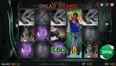 Демо слот Dead Beats відтворюється через макет із п'ятьма барабанами та трьома рядами. Існує до 30 регульованих ліній виплат, що визначають призові комбінації. Вибрати розмір ставки пропонується від 0,01 до 37,50 монети на спині. Під час гри на котушках з'являється дев'ять звичайних символів. Тут усі виграші виплачуються ліворуч, крім Розкиду. Ланцюжки множаться на монети, поставлені на лінію, а Скаттер множить загальну ставку. Тут значки поділяються на категорії з низькою, середньою та високою оплатою. Таблиця виграшів: