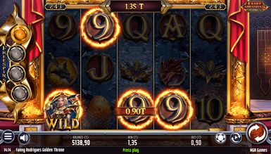 Ваше завдання — отримати виплати в ігровому автоматі Fanny Rodrigues Golden Throne. І тому необхідно, щоб у полі сформувалася комбінація. У її побудові беруть участь щонайменше три однакові символи слот-автомата. Наприклад, карткові номінали, меч, яйце дракона, корона, дівчина-войовниця.