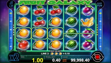 Видача в ігровому автоматі Фруктова Галактика розраховується за ряд з 2–5 однакових піктограм, що знаходяться на смузі, що оплачується. Кожна картинка має певні показники, вивчити які можна без смс.
