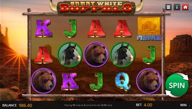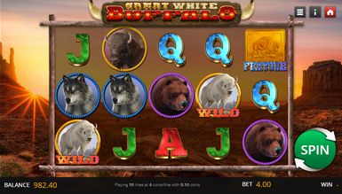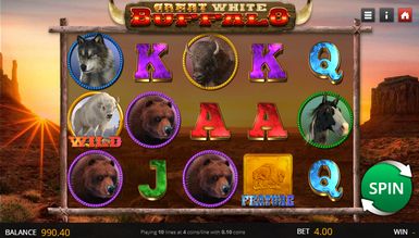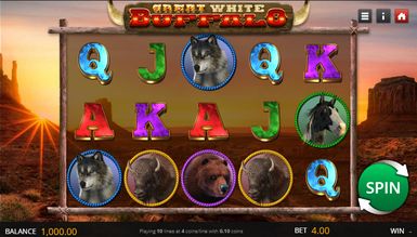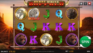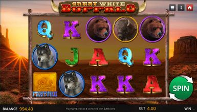П'ять котушок з 10 смужками в слоті Great White Buffalo розташовані на тлі сонячного заходу сонця, що пробивається між гір. На кін у слот-машині приймається ставка від одного до п'яти кредитів. Ігри можна скачати на телефон і насолоджуватися безперервним процесом, граючи з мобільного. Так буде більше шансів заробити.