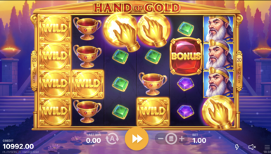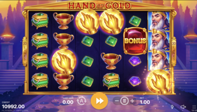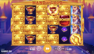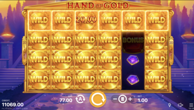 Вибравши слот Hand of Gold, вивчіть його характеристики. Для цього грайте безкоштовно у топ онлайн казино в Україні. Гамінатор складається із 6 барабанів. Перед їх обертанням потрібно зробити ставки. Розробники слот-автомата пропонують одну монету від $0,2 до $100. Лінії виплат вказувати не потрібно, тому що значення фіксовано і дорівнює 20.