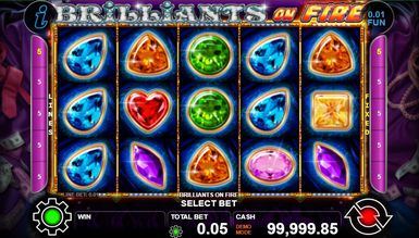 Гра в Brilliants on fire ведеться на п'яти барабанах з п'ятьма лініями виплат, проте не соромтеся такою малою їх кількістю: у грі на вас чекають неймовірні призи, тому що виплати трапляються досить часто. У грі вас також порадують додаткові можливості, які збільшать шанси на приз. Серед них: дикий символ, який здатний перетворити будь-яку комбінацію на призову, а також два символи розкиду, що з'являються в будь-якому місці на екрані. І це ще не все: режим гри на шанси після кожного виграшу допоможе вам подвоїти призову суму. З такими можливостями додаткові призові раунди та безкоштовні обертання просто не потрібні, тому в слоті вони й відсутні, що аж ніяк не псує картини.