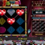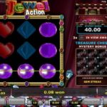 Віртуальний апарат Jewel Action створено командою розробників популярної компанії Novomatic. Тут ви знайдете безліч цікавих додаткових функцій, кумедних ігрових раундів та таємничих призів. Незважаючи на аналогічну тематику, розробникам вдалося створити гру, відмінну від популярного ігрового автомата Just Jewels Deluxe. Замість класичних барабанів, всі символи в цій грі спадатимуть у позолочену рамку, і складатимуть у ній виграшні комбінації, які можуть принести незліченні багатства обраним користувачам. Тематика автомата досить розкішна, тому що вона повністю присвячена дорогоцінному камінню.