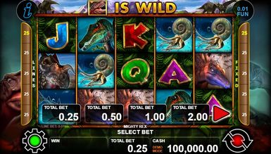 Яскраво-багряний колір є основним у слоті Mighty Rex, оскільки цей період був одним із найнебезпечніших. Динозаври тут переслідують на кожному кроці, причому вони не принесуть нічого поганого, тільки приємні виплати. Відмінна графіка надає грі реалістичності, а музика ще більше підстьобує до азартного процесу. Вам напевно припаде до вподоби цей слот.
