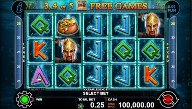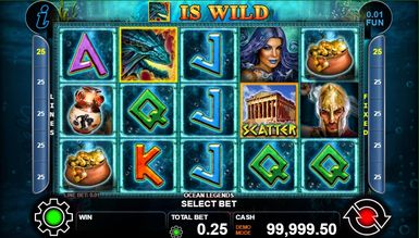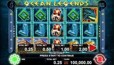 Ігровий автомат Легенди Океану — багатофункціональний розслаблюючий слот з інтерактивним геймплеєм, що включає два спеціальні символи, ризик-гру та фріспіни. В основній грі 5 барабанів та 25 ліній виплат, які вільно регулюються гравцем. Виставити їх кількість доступне як повзунком Lines внизу екрана, за допомогою меню, а також кнопками з боків барабана. Синя кнопка із написом Start активує обертання. Поруч із нею розташовується функція авто-режиму — Auroplay, яка активує автоматичні спіни. Показник Fun регулює заставу, яку залишає гравець: 0.01 або 0.05. Він безпосередньо впливає характер виплат. Ставка вставляється функцією Bet. Вона варіюється від одного до двадцяти кредитів на одну лінію. Таким чином, максимально можливий показник — 500 кредитів. Menu відкриває перед гемблером можливість виставити число ліній та авто-спінів, відрегулювати гучність звуку, а також активувати функцію Max Bet, що підвищує всі показники до максимуму. Крім того, через меню можна перейти в режим перегляду таблиці коефіцієнтів, ліній, правил гри та короткого опису спеціальних можливостей. Щоб це зробити, потрібно у вікні Menu натиснути кнопку Help.