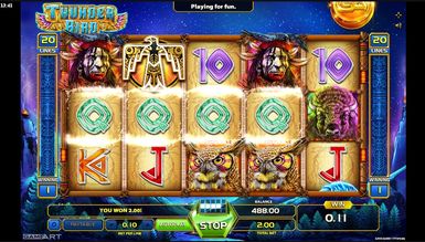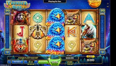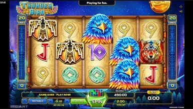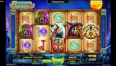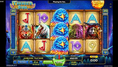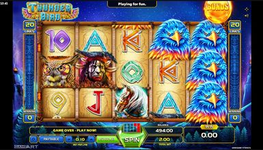 Ігровий процес у віртуальному слоті Thunder Bird складається з основної гри, раунду бонусних обертань та ризик-ігри. Користувач зможе ознайомитись з усіма функціональними можливостями грального автомата після того, як визначить суму ставки (клавіша Bet per Line) та запустить барабани (клавіша Spin). В основній грі виграші нараховуються за складені активні лінії призові комбінації. У виграшному поєднанні має бути від 3-х до 5-ти однакових тематичних символів, що розташовуються зліва направо. Якщо комбінацій буде кілька, то винагороди підсумовуються та переводяться на баланс. Після кожного вдалого спина є можливість збільшити отриманий прибуток у кілька разів. Для цього потрібно взяти участь у ризик-грі. Її умови прості. Гравцю необхідно відгадати колір карти, що знаходиться у центрі екрана. Вірна відповідь збільшить ставку в 2 рази. Якщо він виявиться помилковим, тоді сума, що була поставлена на кін, анулюється.