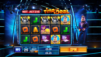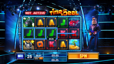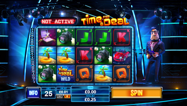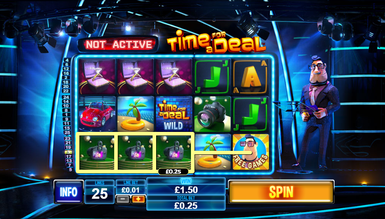 Запускати ігрові барабани можна буде за допомогою SPIN. Якщо користувачів не влаштує одиночне обертання, то у грі також передбачено автоматичний режим, який самостійно крутитиме барабани за поточними ігровими параметрами. Ігровий автомат Time for a Deal зможе зацікавити гравців наявністю спеціалізованих символів, режимом вільних обертань та захоплюючою бонусною грою. Гра має у своєму розпорядженні наявність трьох спеціальних символів, вайлда, бонусного та Free Spins. Останній символ передбачає активацію режиму вільного обертання. Даний режим складається з двох частин, спочатку користувачеві слід зробити вибір символів у трьох рядах, перший відповідатиме за додатковий вайлд, другий за додатковий множник, а третій — за кількість безкоштовних обертань, максимальна кількість яких може бути 25.