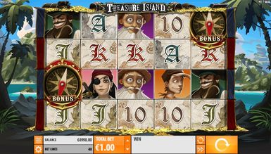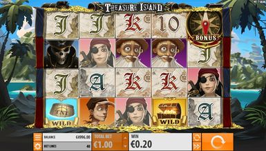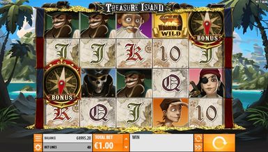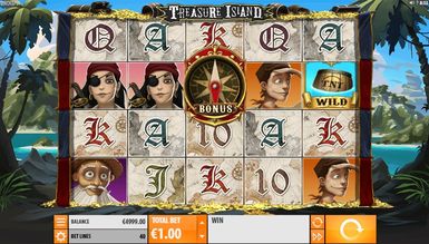 Перед тим, як розпочати незабутню подорож на піратському кораблі, слід вибрати суму ставки поточного раунду. Її розмір регулюється кнопкою Total bet. У слоті Treasure Island визначати діючі лінії не потрібно, оскільки активовано весь представлений набір. Для отримання прибутку необхідна наявність поєднання трьох і болючіших за аналогічні картинки на діючій лінії. У призовій позиції символи оживуть та кивнуть головою на знак вітання. Унікальність відеоігри Treasure Island полягає у присутності кількох призових турів. Коли на ігровому майданчику випадають дві картинки з пороховою бочкою, активується бонусна гра Атака піратів. Відкривається додатковий екран, на якому ви побачите мальовничу бухту у всій красі та корабель піратів на воді. Його гармати спрямовані у бік екрану. Їхня мета дикі символи, які залишилися на своїх місцях. Ядра, що летять у барабани, їх розбиватимуть. У клубах диму розташовані поруч іконки також перетворюватимуться на дикі знаки. Коли атака буде завершена, порожні комірки заповняться новими іконками. Потім нараховується виплата за прибуткові поєднання.