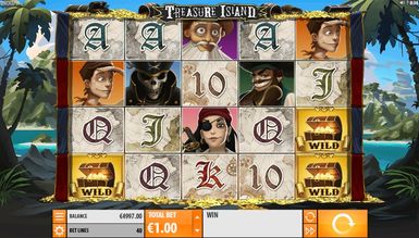 Віртуальний слот Treasure Island налічує 5 барабанів та 40 призових ліній. На ігровому майданчику символи вишикувалися в чотири ряди. Графічне оформлення автомата повністю відбиває обрану тему. У плані графіки слот легко може пооперувати з популярним ігровим автоматом Booty Time, який славиться вражаючою візуалізацією. Позаду барабанів розкинувся тропічний острів. Затишна бухта стане надійним притулком для піратського корабля. Високі пальми приховують від променів сонця, що горить, а гори від сторонніх очей. Це чудове місце, щоб залишити тут награбовані скарби, головне потім про них не забути. Відповідають вибраному стилю та символи ігрового автомата. Призові комбінації вибудовуватимуть портрети відомих піратів капітана Джона Сільвера та капітана Флінта, Джима Холкіна, а також невід'ємний атрибут кожної морської подорожі компас.
