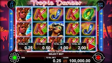Ігровий автомат Tropic dancer — гарна можливість поринути в атмосферу запальних танців та виграшів. Якісна та яскрава графіка створює атмосферу диско, а весела музика миттєво піднімає настрій.