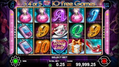 Ігровий автомат Urban Lady відноситься до розважальних універсальних відеослотів. Геймплей гри розроблено якісно, з урахуванням усіх особливостей тематики. Що стосується можливостей, то тут крім базової гри присутні два спеціальні символи, фріспіни та ризик-гра. В основній грі беруть участь 5 барабанів та 25 ліній виплат, регулювати які гравець може як за допомогою кнопок на екрані, так і опцією Lines. Синя кнопка в правому нижньому куті обертає барабани, поруч із нею з'являється функція Autoplay, яка включає режим автоматичних обертань. Червона кнопка Fun вибирає, який коефіцієнт застави ставить гравець — 0.01 або 0.05. Ставка регулюється функцією Bet. Мінімум на лінію можна поставити 1 кредит, максимум 20. Відповідно, при грі в 15 ліній найбільша ставка становить 500 кредитів. Вкладка Game Menu відкриває перед гравцем можливість вибору ліній, повзунок гучності та жовту опцію Max Bet, яка виставляє максимальні показники у грі. До того ж, з Game Menu можна перейти у вікно, з таблицею множників та правилами гри — вкладка Help.