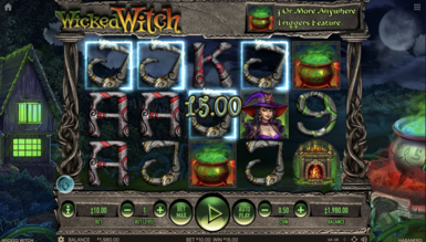 Розважальний процес, що проходить у слоті Wicked Witch, має на увазі вельми стандартні правила. Комбінації, що приносять виграші, будуть вишиковуватися зліва направо і включати до свого складу від 3 до 5 однакових символів. Для всіх символів передбачено індивідуальні коефіцієнти. Щодо бонусних доповнень, то вони у слоті Wicked Witch представлені у вигляді парочки спеціальних знаків. Відьма в ролі вайлда стане найвигіднішим з погляду коефіцієнтів символом, а також вона доповнюватиме незавершені комбінації.