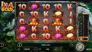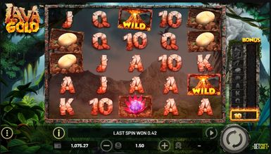 Слот Lava Gold відкриває захоплюючі перспективи отримання великих грошових призів. У ході гри задіяні символи спеціального значення. Вайлд — зображення вулкана зі лавою, підмінить у неповному кластері будь-який базовий символ та забезпечить нарахування виплати.