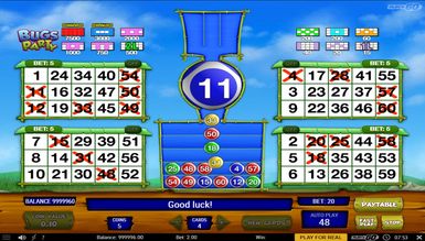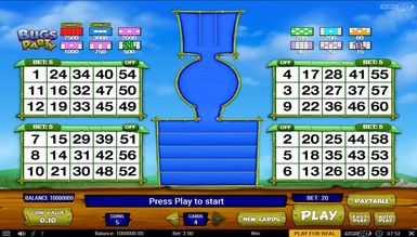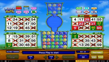 Геймерам, які звикли грати в онлайн лотерею Beetle Bingo буде незвично бачити подібне ігрове поле. У бінго Bugs Party загальна кількість куль 60. У тиражі випадає 30. Дається 10 бонусних куль, якщо після основного тиражу гравець має шанс на виграш більше, ніж ставка. Спочатку активно чотири картки на 15 чисел кожна. Картки генеруються випадковим чином. За бажання їх можна змінити. Якщо гравцеві здасться, що ставка занадто велика, він може відключити картки в будь-якому порядку і залишити стільки, скільки вважатиме за потрібне від однієї до всіх чотирьох.