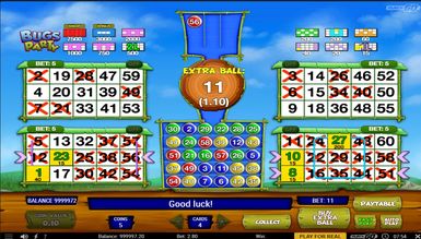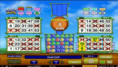 Розробникам із Play'n GO вдалося вирішити найважливішу проблему лото: монотонність розіграшу. Вони просто використали яскраву тематику жуків, знайому багатьом шанувальникам ігрового автомата Beetle Mania Deluxe. У Bugs Party нудьгувати не доведеться ні на хвилину. Особливо захоплює процес купівлі додаткових кульок. Так що Bugs Party сподобається не лише любителям бінго, а й усім, хто любить ненудну гру з великими призами.