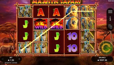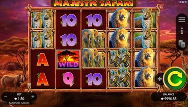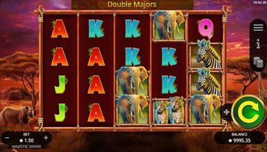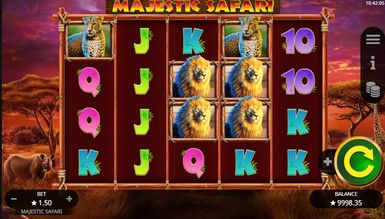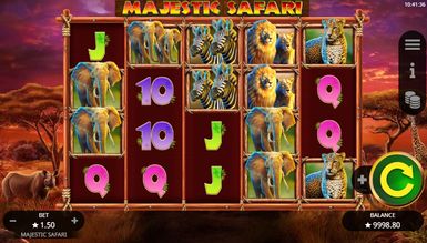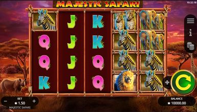 Ігровий автомат Majestic Safari — це випуск Booming Games з 5 вертикальними котушками та 50 смугами для комбінацій. Апарат має високоякісну графіку. На головному екрані користувачі можуть знайти анімованих тварин у савані на задньому плані та значки з високою роздільною здатністю. Музика, особливо барабани, створить атмосферу, яка змусить відчути себе у центрі савани. Це гра з фіксованими лініями виплат, оснащена бонусами: фрі-спіни и ре-спіни.