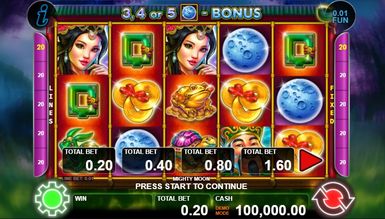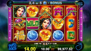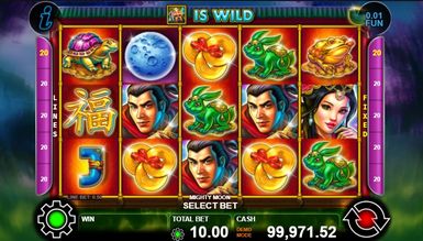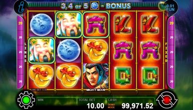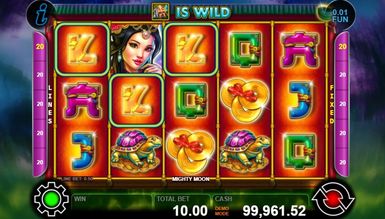 Ігровий автомат Mighty Moon випущено у червні 2019 року. В основу його тематики покладено азіатські мотиви, багатство, успіх. Рівень повернення депозиту у слот-машині дорівнює 96.4%. Крім високої віддачі розробником CT Gaming, передбачені бонусні елементи. Вони збільшують ймовірність успіху, і ви гратимете на реальні гроші з прибутком. Але і демо режим виявиться не менш цікавим. Перевірте, чи активовано ігровий автомат Mighty Moon без реєстрації.