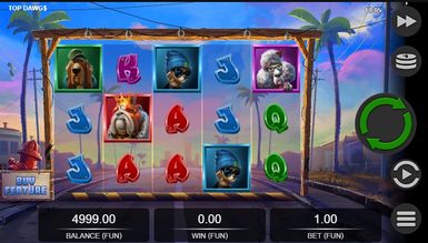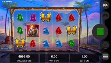 На екрані грального автомата Top Dawgs з'явиться пудель з такими показниками: 2.5-25. Бульдог із короною на голові подарує максимум 30 кредитів.