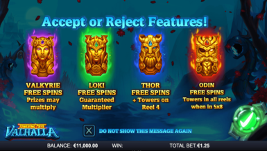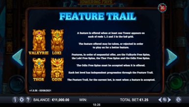 Запустивши слот Towering Pays Valhalla, користувач опиниться в дрімучому лісі, на тлі якого розташувалися п'ять котушок із 15 смужками, на кожну з них приймається ставка від 25 кредитів за спін. В емуляторі висока волатильність 95,5% RTP, можна виграти пристойну суму монет швидко. Грати з мобільного в ігровий автомат Towering Pays Valhalla так само зручно, як і з ПК, гра адаптована під екран будь-якого гаджета. Для цього потрібно лише скачати на телефон симулятор і насолоджуватися захоплюючим процесом у будь-якій точці земної кулі, головне, щоб було стабільне підключення до інтернету.пе